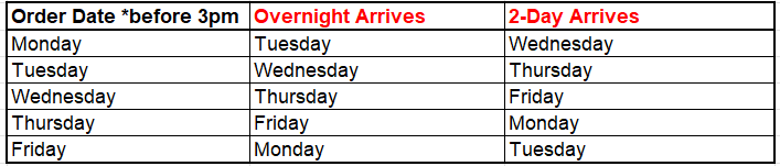 Overnight Shipping (Placed by 3 PM CT) → Delivered Next Business Day